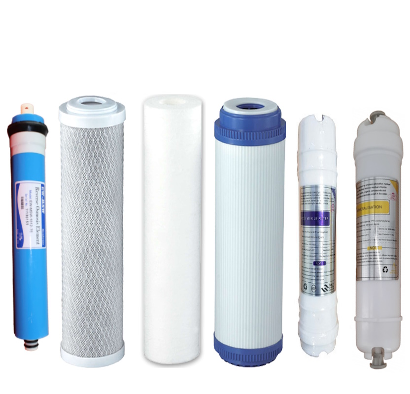 Pack 6 etapas : 3 filtros + Membrana 100 GPD + Postfiltros Carbón Quick Conection + Filtro remineralizador